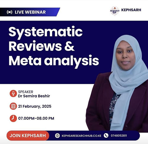 Dr. Semira Beshir delivered a comprehensive session on systematic reviews and meta-analysis, providing participants with essential methodologies, best practices, and practical insights for conducting high-quality research. Her expertise helped attendees gain a deeper understanding of evidence synthesis, data interpretation, and research validity, equipping them with the tools to enhance their academic and professional research endeavors.